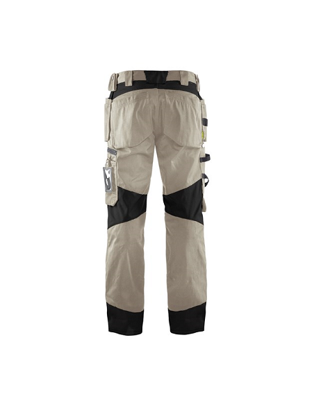 Pantalon de travail Blaklader avec poches flottantes, 65% polyester, 35% coton croisé 300g/m². Très pratique ce pantalon possède 2 poches flottantes avec porte-outils. Elles peuvent être insérées dans les poches avant. Triple coutures à l'entrejambes pour plus de résistance. Jambes pré-courbées pour une coupe ajustée. Poches genouillères renforcées en Cordura®. Braguette plastique et bouton métal. Boucle marteau, anneau en D à l'avant. Dos rehaussé. 2 Poches cavalières avant, 2 Poches arrières à soufflet renforcées, Poche détachable pour badge identifiant, 1 Poche jambe à soufflet et zip avec poche pour stylo et téléphone en tissu extensible, 1 Poche mètre renforcée et poche stylo - 3 Longueurs de jambes : longues, standards et courtes.