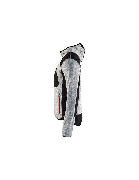 Veste originale Blaklader, chaude et respirante, 100% Polyester, tricoté 380 g/m². Cette veste très confortable à capuche est renforcée par de la matière softshell sur les coudes, les épaules et le dos. Fermeture centrale zippée. 1 Poche poitrine, 2 Poches avant avec zip. Extension en du bas du dos. Manches élastiquées. Cette veste est parfaite pour les activités professionnelles au quotidien.
