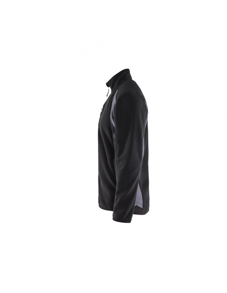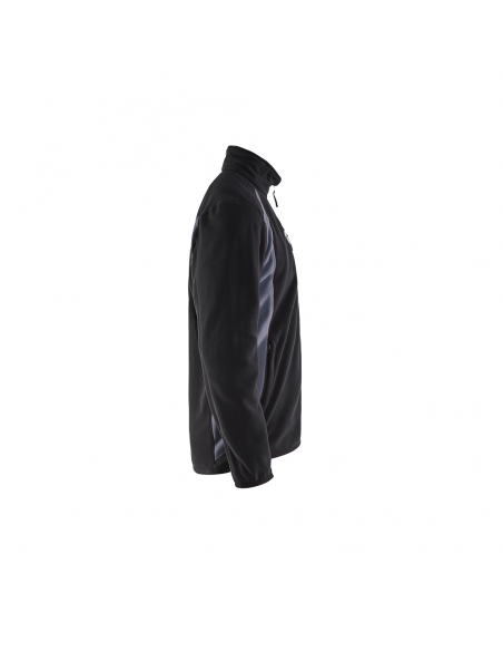 Veste polaire bicolore, 100% polyester. Chaude et confortable pour toutes les activités professionnelles. Idéale pour assortir votre tenue. Col montant avec une fermeture centrale zippée. 1 Poche poitrine et 2 poches avant avec zip. Poignets et la taille élastiqués.