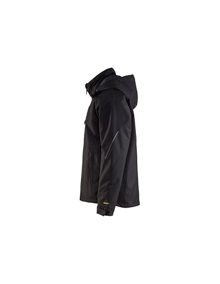 Veste technique Blaklader, 100% polyester oxford laminé, imperméable 10000mm 4000g/m²/24h, 200 g/m². Thermique, imperméable, coupe vent, respirante. Coutures thermo-soudées étanches. Capuche amovible. Fermeture centrale zippée. 1 Poche poitrine à zip, 2 Poches avant à zip, 1 Poche intérieure. Détails réfléchissants. Taille avec cordons de serrage. Poignets passe pouce à l'extrémité de la manche. Cette veste de travail ergonomique et confortable est adaptée aux travaux en extérieur, idéale en hiver.
