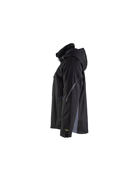 Veste technique Blaklader, 100% polyester oxford laminé, imperméable 10000mm 4000g/m²/24h, 200 g/m². Thermique, imperméable, coupe vent, respirante. Coutures thermo-soudées étanches. Capuche amovible. Fermeture centrale zippée. 1 Poche poitrine à zip, 2 Poches avant à zip, 1 Poche intérieure. Détails réfléchissants. Taille avec cordons de serrage. Poignets passe pouce à l'extrémité de la manche. Cette veste de travail ergonomique et confortable est adaptée aux travaux en extérieur, idéale en hiver.