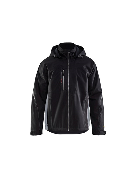 Veste hardshell Blaklader, 100% polyester oxford laminé, imperméable 10000mm, 4000g/m²/ 24h 200 g/m². Doublure intérieure Airmesh et polyester. Imperméable. Coupe vent. Respirante. Coutures thermo soudées étanches. Capuche amovible. Fermeture centrale zippée. 1 Poche poitrine à zip, 2 Poches avant à zip, 1 Poche intérieure avec compartiment téléphone. Détails réfléchissants. Taille avec cordons de serrage. Poignets passe pouce à l'extrémité de la manche. Cette veste de travail imperméable est idéale en extérieur par temps pluvieux, sa respirabilité assure un grand confort pour l'utilisateur.