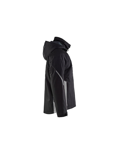 Veste hardshell Blaklader, 100% polyester oxford laminé, imperméable 10000mm, 4000g/m²/ 24h 200 g/m². Doublure intérieure Airmesh et polyester. Imperméable. Coupe vent. Respirante. Coutures thermo soudées étanches. Capuche amovible. Fermeture centrale zippée. 1 Poche poitrine à zip, 2 Poches avant à zip, 1 Poche intérieure avec compartiment téléphone. Détails réfléchissants. Taille avec cordons de serrage. Poignets passe pouce à l'extrémité de la manche. Cette veste de travail imperméable est idéale en extérieur par temps pluvieux, sa respirabilité assure un grand confort pour l'utilisateur.