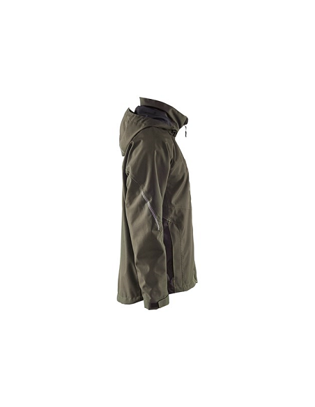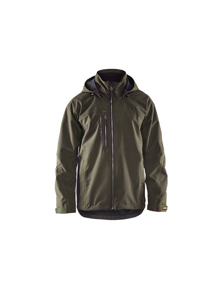 Veste hardshell Blaklader, 100% polyester oxford laminé, imperméable 10000mm, 4000g/m²/ 24h 200 g/m². Doublure intérieure Airmesh et polyester. Imperméable. Coupe vent. Respirante. Coutures thermo soudées étanches. Capuche amovible. Fermeture centrale zippée. 1 Poche poitrine à zip, 2 Poches avant à zip, 1 Poche intérieure avec compartiment téléphone. Détails réfléchissants. Taille avec cordons de serrage. Poignets passe pouce à l'extrémité de la manche. Cette veste de travail imperméable est idéale en extérieur par temps pluvieux, sa respirabilité assure un grand confort pour l'utilisateur.