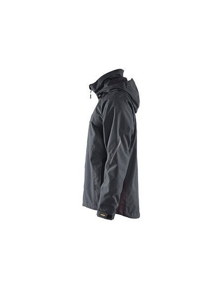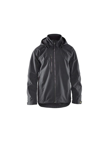 Veste hardshell Blaklader, 100% polyester oxford laminé, imperméable 10000mm, 4000g/m²/ 24h 200 g/m². Doublure intérieure Airmesh et polyester. Imperméable. Coupe vent. Respirante. Coutures thermo soudées étanches. Capuche amovible. Fermeture centrale zippée. 1 Poche poitrine à zip, 2 Poches avant à zip, 1 Poche intérieure avec compartiment téléphone. Détails réfléchissants. Taille avec cordons de serrage. Poignets passe pouce à l'extrémité de la manche. Cette veste de travail imperméable est idéale en extérieur par temps pluvieux, sa respirabilité assure un grand confort pour l'utilisateur.