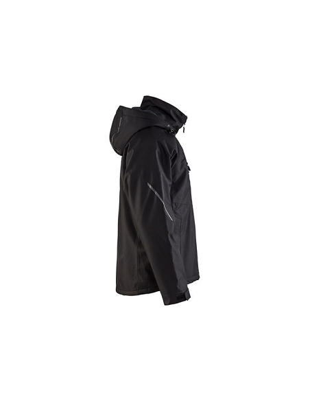 Veste hardshell Blaklader, 100% polyester oxford laminé, imperméable 10000mm, 4000g/m²/ 24h 200 g/m². Doublure intérieure Airmesh et polyester. Imperméable. Coupe vent. Respirante. Coutures thermo soudées étanches. Capuche amovible. Fermeture centrale zippée. 1 Poche poitrine à zip, 2 Poches avant à zip, 1 Poche intérieure avec compartiment téléphone. Détails réfléchissants. Taille avec cordons de serrage. Poignets passe pouce à l'extrémité de la manche. Cette veste de travail imperméable est idéale en extérieur par temps pluvieux, sa respirabilité assure un grand confort pour l'utilisateur.