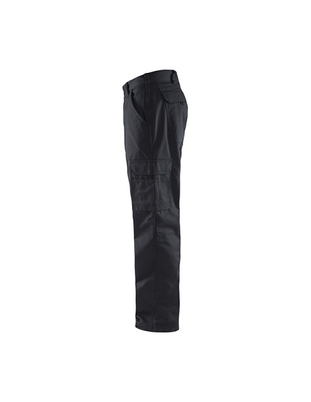 Pantalon Blaklader, 65% polyester, 35% coton croisé, 240 g/m². Indispensable et fonctionnel dans le secteur des services. Triples coutures à l'entrejambes. Braguette plastique, boutons métals. 2 Poches avant, 2 Poches arrières à rabat et velcro, 1 Poche jambe avec soufflet, 1 Poche téléphone, 1 Poche mètre. 2 Longueurs de jambes : standarts ou courtes.