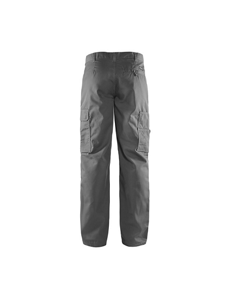 Pantalon Blaklader, 65% polyester, 35% coton croisé 240 gr/m². Léger et confortable, ce pantalon est adapté au travail en intérieur dans le secteur des services. Fermeture zippée, bouton plastique. 1 Poche arrière fermée avec bouton plastique, 2 Poches cavalières, 2 Poches latérales avec soufflet fermées par un rabat, 1 Poche stylo, 1 poche téléphone. 3 longueurs de jambes.