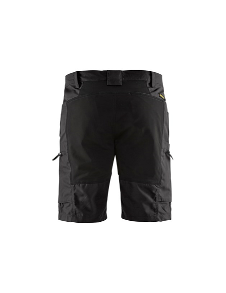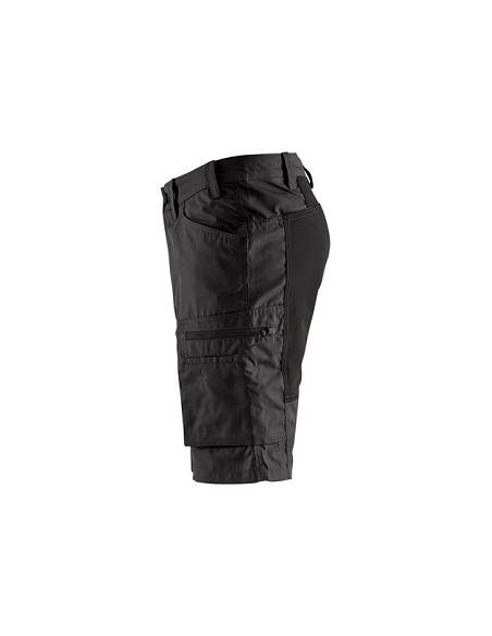 Short de service Blaklader, 65% polyester, 35% coton 166 gr/m2. Idéal en saison estivale. Ce short léger à des emplacements en stretch à l'arrière et à l'entrejambe. Braguette et bouton plastique, anneau en D à la taille. 2 Poches arrières, 2 Poches jambes à soufflet avec zip l'une avec compartiment à stylo l'autre avec des compartiments pour couteau et règle, 2 Poches cavalières.