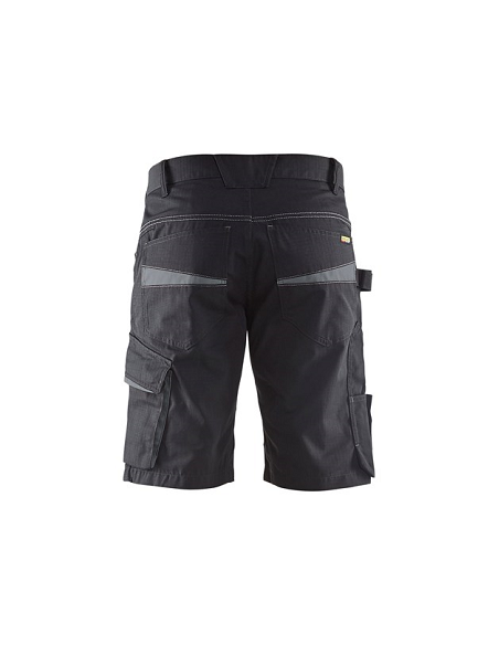Short de travail Blaklader, 60% coton, 40% polyester 250 gr/m². Grâce au tissu ripstop, ce short est résistant, léger et confortable. Passants larges. Porte marteau. Fermeture zippée, bouton métal caché pour éviter les rayures. 2 Poches arrières, 2 Poches cavalières avec sous-poche zippée, 1 Poche jambe fermée par rabat et bouton, 1 Poche mètre avec sur-poche stylo.