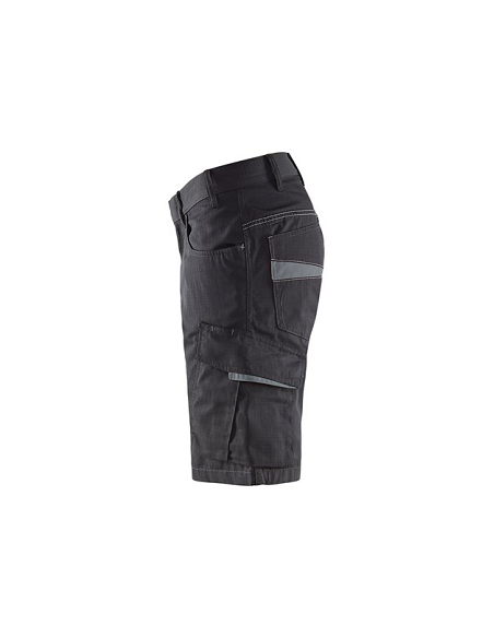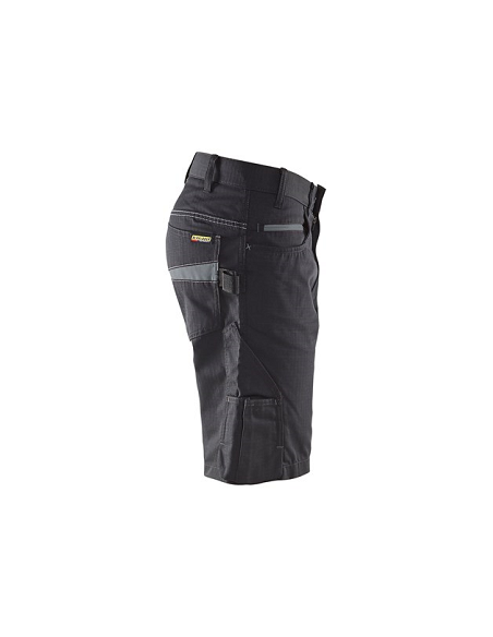 Short de travail Blaklader, 60% coton, 40% polyester 250 gr/m². Grâce au tissu ripstop, ce short est résistant, léger et confortable. Passants larges. Porte marteau. Fermeture zippée, bouton métal caché pour éviter les rayures. 2 Poches arrières, 2 Poches cavalières avec sous-poche zippée, 1 Poche jambe fermée par rabat et bouton, 1 Poche mètre avec sur-poche stylo.