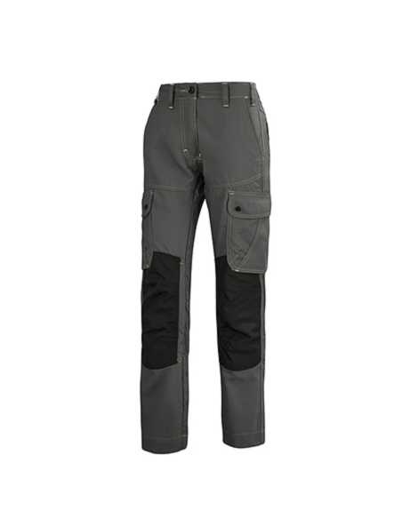 Pantalon de travail CRAFT WORKER, confectionné avec des tissus français, 65% Coton, 35% polyester 280 gr/m². Coupe femme, ce pantalon est idéal pour tous types métiers. Renforts genoux en cordura pour une meilleure résistance à l'abrasion. Taille rehaussée et semi élastiquée. Passants larges. 2 Poches cavalières et 1 sur poche, 1 Poche mètre, 2 Poches cuisse à soufflet et rabat, 1 Poche stylo, 1 Poche arrière à rabat. Triple coutures. Mercerie amagnétique. Entrejambe de 80 cm. Ourlet de 5cm pour allonger les jambes.