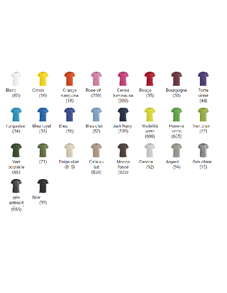 Tailles XS au 5 XL selon les coloris. 26 Coloris disponibles. Existe en col V et version femme.