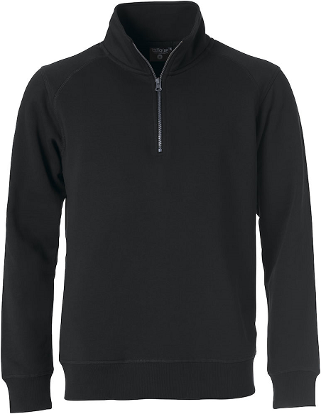 Sweatshirt demi zip molletonné CLIQUE basic 300gr, 80% coton, 20% polyester. Col montant avec fermeture zippée YKK Metalux. Bords cote à la taille et aux poignets. 1 Poche zippée sur le coté. Résiste aux lavages à 60°C. Certification OEKO-TEX. Tailles XS au 5XL selon les coloris. 5 coloris disponibles.