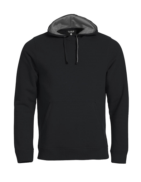 Sweatshirt à capuche CLIQUE, 65% coton, 35% polyester 300 gr/m². Bords cote à la taille et aux poignets. Capuche doublée. Cordon de serrage ton sur ton. Poche centrale kangourou avec système smartphone et œillet pour écouteurs. Résiste aux lavages à 60°C. Certification OEKO-TEX. Tailles XS au 5XL selon les coloris. 8 coloris disponibles.