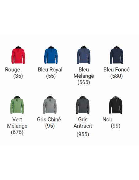 Sweatshirt à capuche CLIQUE, 65% coton, 35% polyester 300 gr/m². Bords cote à la taille et aux poignets. Capuche doublée. Cordon de serrage ton sur ton. Poche centrale kangourou avec système smartphone et œillet pour écouteurs. Résiste aux lavages à 60°C. Certification OEKO-TEX. Tailles XS au 5XL selon les coloris. 8 coloris disponibles.