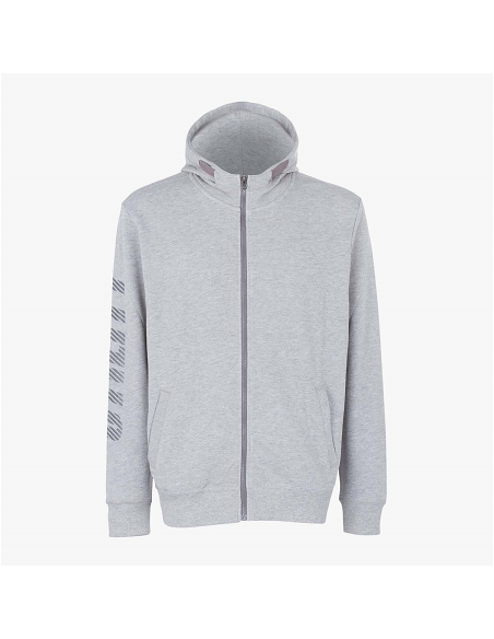 Sweat-Shirt, 100% coton. Pratique et confortable, il peut être utilisé en veste ou sweat. Capuche avec cordon. Fermeture centrale zippée. 2 poches basses. Poignets et taille élastiquée.