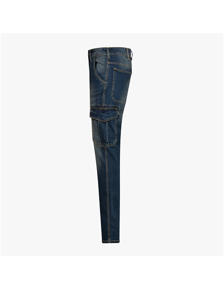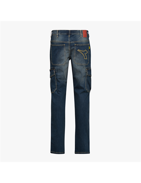 Jeans de travail Diadora, 98% coton, 2% élasthanne. Coupe cargo ajustée. Robuste et confortable. 2 Poches arrières, 2 Poches latérales, 2 Poches cavaliers.