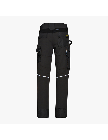 Pantalon carbon performance Diadora, 54% nylon, 39% polyester, 7% élasthanne 210 gr/m². Confortable, l'élasthanne facilite les mouvements. Déparlant à l'eau et respirant. Coupe ajustée. 1 Poche mètre, 2 Poches arrières, 2 Poches cavaliers, 1 Surpoche, 1 Porte mètre.