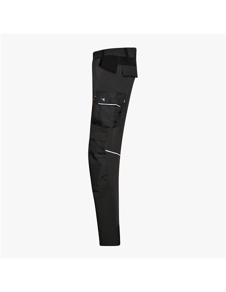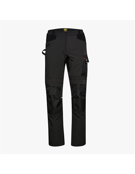 Pantalon carbon performance Diadora, 54% nylon, 39% polyester, 7% élasthanne 210 gr/m². Confortable, l'élasthanne facilite les mouvements. Déparlant à l'eau et respirant. Coupe ajustée. 1 Poche mètre, 2 Poches arrières, 2 Poches cavaliers, 1 Surpoche, 1 Porte mètre.