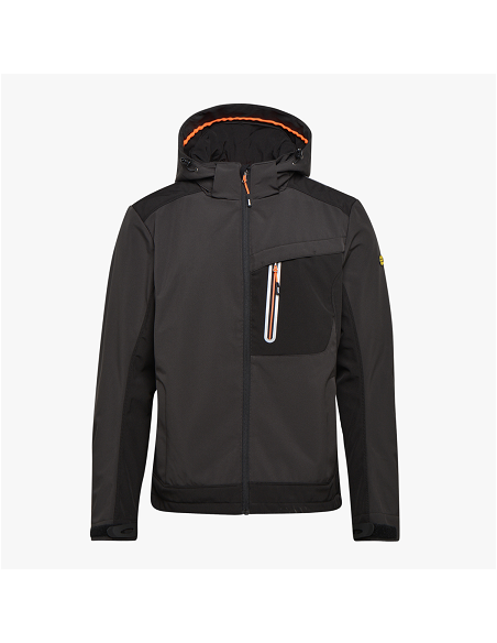 Veste Softshell Carbon tech Diadora 94% polyester 6% élasthanne 310 gr /m² - Intérieur polaire - Capuche amovible et réglable avec cordon - Géox breathing System pour plus de respirabilité - 2 Poches mains avec zip - 1 Poche cur zippée - 1 Poches intérieur.