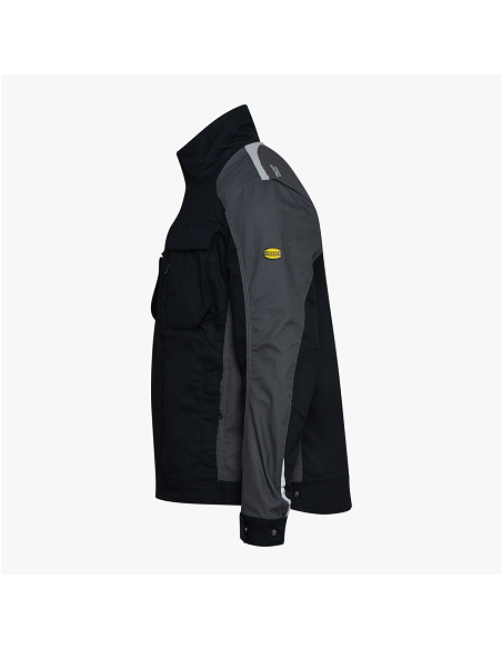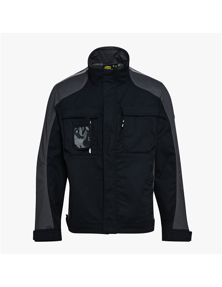 Veste multipoches Workwear Tech Diadora, 65% polyester, 35% coton 270 gr/m². Col Haut. Fermeture centrale zippée et rabat de protection. Réglable à la taille et aux poignets. Respirant grâce au Géox breathing System. Très pratique avec ses 7 poches dont 1 à l'intérieur.