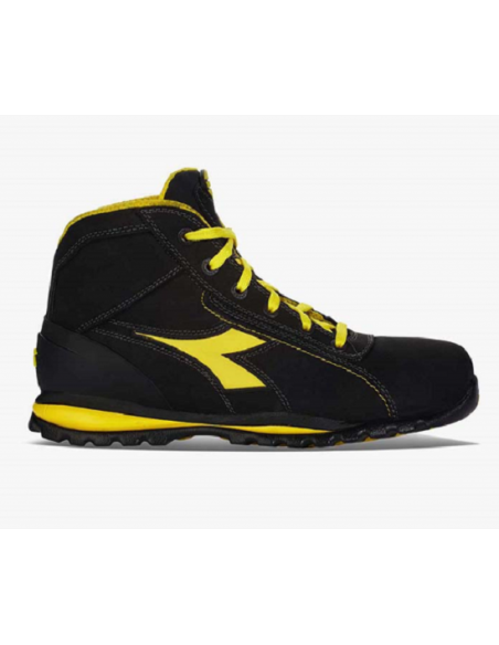 Chaussures de sécurité montantes Diadora Glove. Tige en cuir nubuck hydrofuge. Coque aluminium résistante à 200 joules. Semelle anti perforation souple. Doublure Air mesh. Résiste aux hydrocarbures et à la chaleur par contact jusqu'à 300°C. Ce modèle extrêmement souple est idéal pour les travaux en posture accroupie.