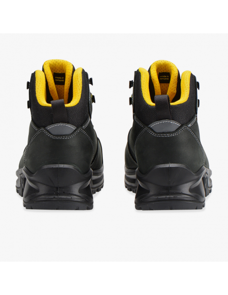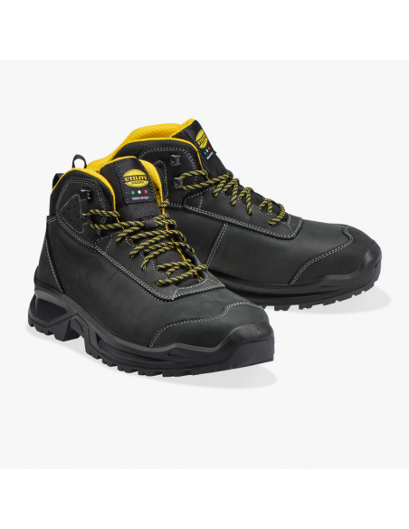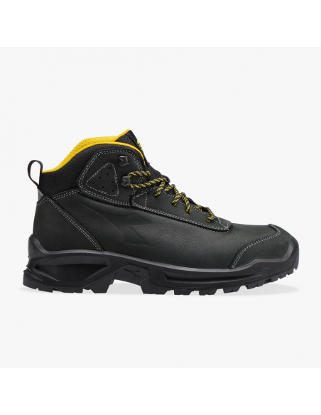 Chaussures de sécurité montantes Diadora Cross Country. Tige en nubuk hydrofuge. Coque acier résistante à 200 joules. Semelle anti perforation. Résiste aux hydrocarbures. Ce modèle est idéal pour les travaux en extérieur.