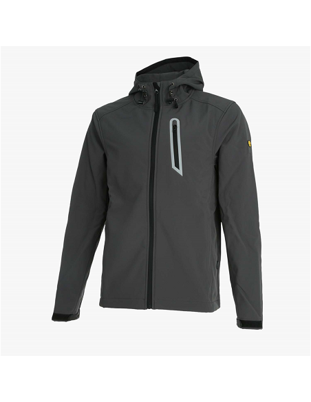 Veste softshell Sail Diadora, 94 % polyester, 6% élasthanne 280 gr/m2. Idéale pour les travaux en extérieur. Déperlante à la pluie, coupe vent et respirante. Col montant avec capuche réglable. Fermeture centrale zippée bord à bord. 2 Poches basses avec fermeture zip. 1 Poches poitrine zippée. Poignets réglables avec bande auto agrippant. Taille réglable avec cordons.