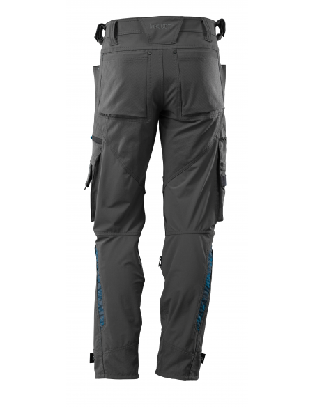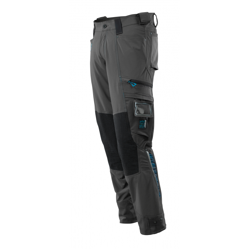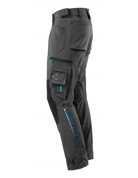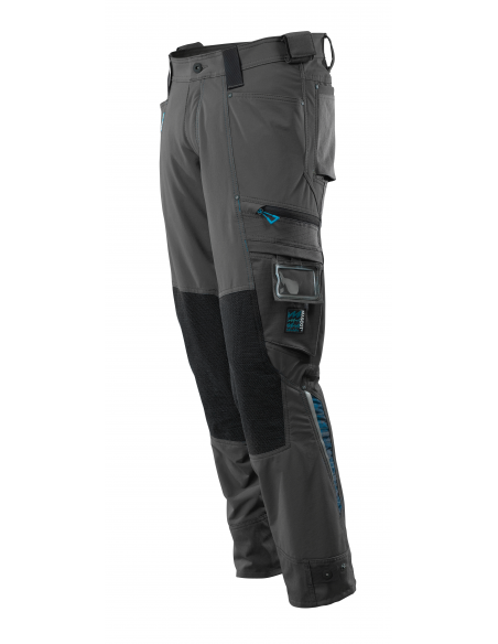 Pantalon de travail Advance Mascot, 92% nylon, 8% élasthanne 235 gr/m2. Robuste et confortable stretch multidirectionnel et hydrofuge offrant une grande liberté de mouvement. Poches genouillères en cordura. Filet de ventilation au niveau des genoux. Fermeture zippée et bouton métal. Passants larges. 2 Poches cavalières, 1 Poche mètre avec sur poche stylo, 2 Poches arrières, 1 Poche latérale avec fermeture zippée et porte carte amovible. Détails réfléchissants. 3 entrejambes possibles. Certifié OEKO-TEX.