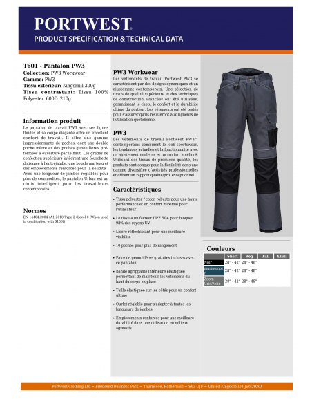 Pantalon de travail 65% polyester, 35% coton 300 gr. Robuste, il est adapté à tous types de métiers aussi bien dans l'industrie que le batiment. Il est doté de poches genouillères renforcées et d'une taille semi élastiquée pour plus de confort. Passant larges et triple coutures pour plus de solidité. Fermeture zippée et bouton métal. Entrejambes de 84 cm avec ourlet de 5 cm. Porte marteau. 2 Poches arrières dont une avec rabat, 2 Poches cavalières, 1 Poche mètre, 1 Poche jambe avec surpoche stylos.