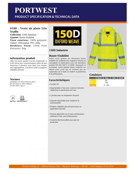 NORMES : EN ISO 20471 Classe 3 - EN 343 Classe 3;1