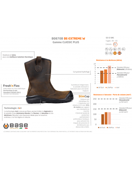 Bottes de sécurité fourrées Be-Extreme. Tige en cuir graissé hydrofuge. Doublure en laine pour une meilleure isolation thermique. Coque composite. Embout renforcé. Bande de protection SlimCap sur coque pour éviter le cisaillement des orteils. Semelle anti perforation. Résiste au glissement et aux hydrocarbures.